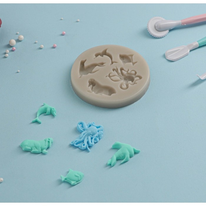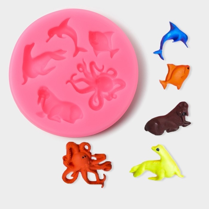 Молд «Морские друзья», силикон, d=8,3 см, цвет розовый