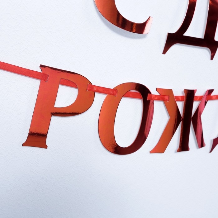 Гирлянда на ленте, металлик "С ДР" красный, дл. 140 см., 250 гр/кв.м
