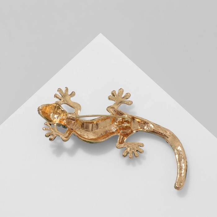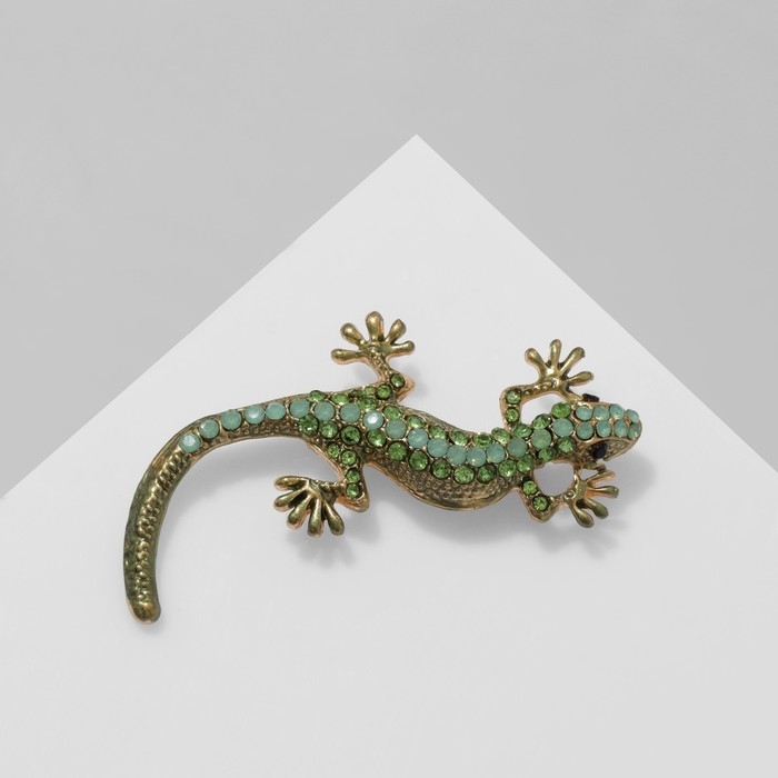 Брошь «Ящерица», цвет зелёный в золоте