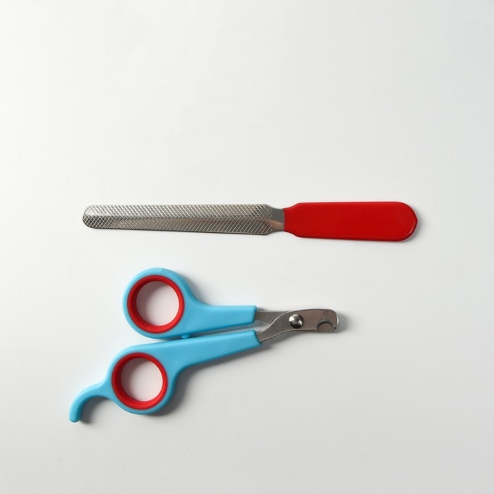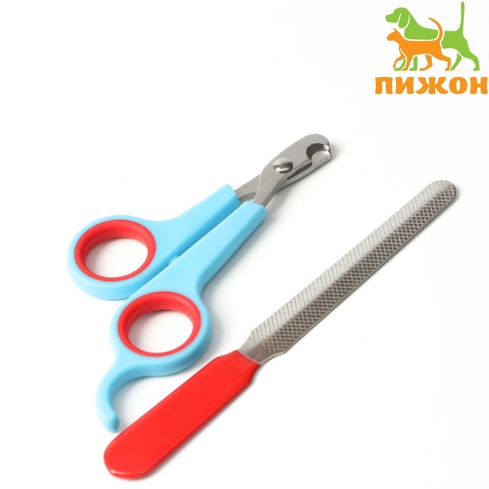 Набор по уходу за когтями: ножницы-когтерезы (отверстие 6 мм) и пилка, сине-красный