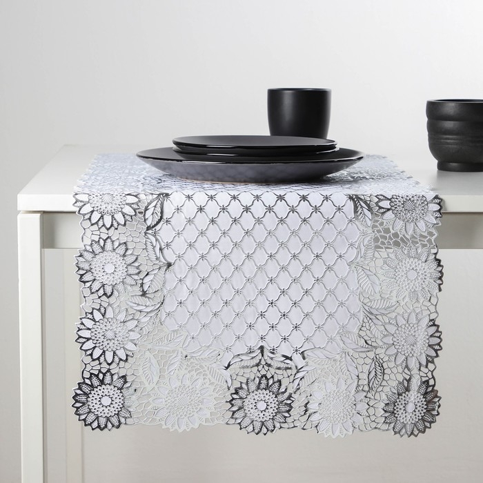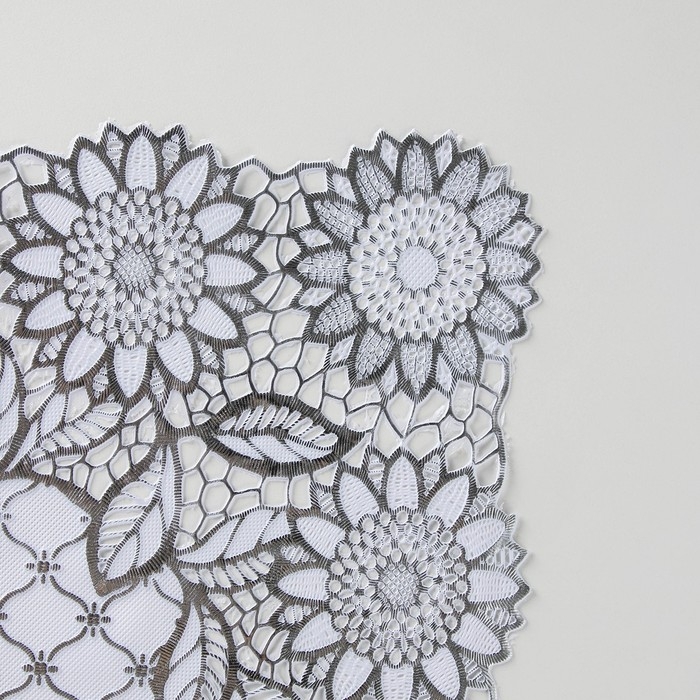 Салфетка ажурная для стола «Букет», 84×40 см, ПВХ, цвет серебро
