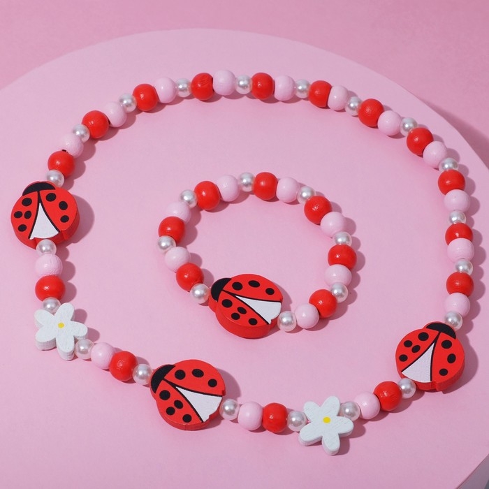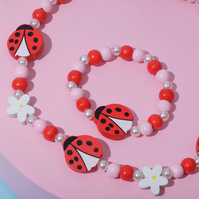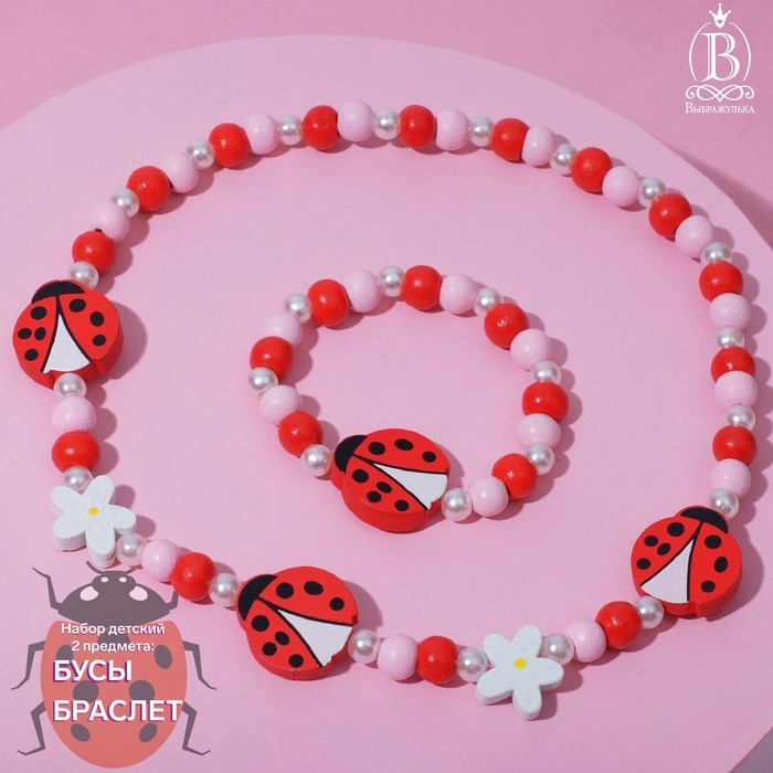 Набор детский «Выбражулька» 2 предмета: бусы, браслет, божьи коровки в цветах, цветной