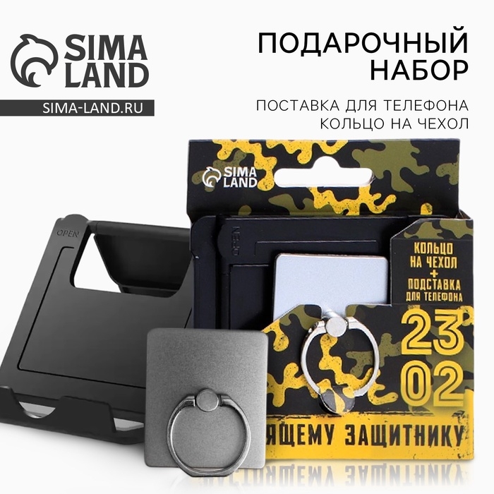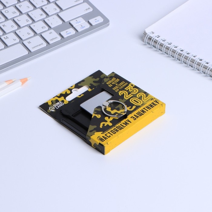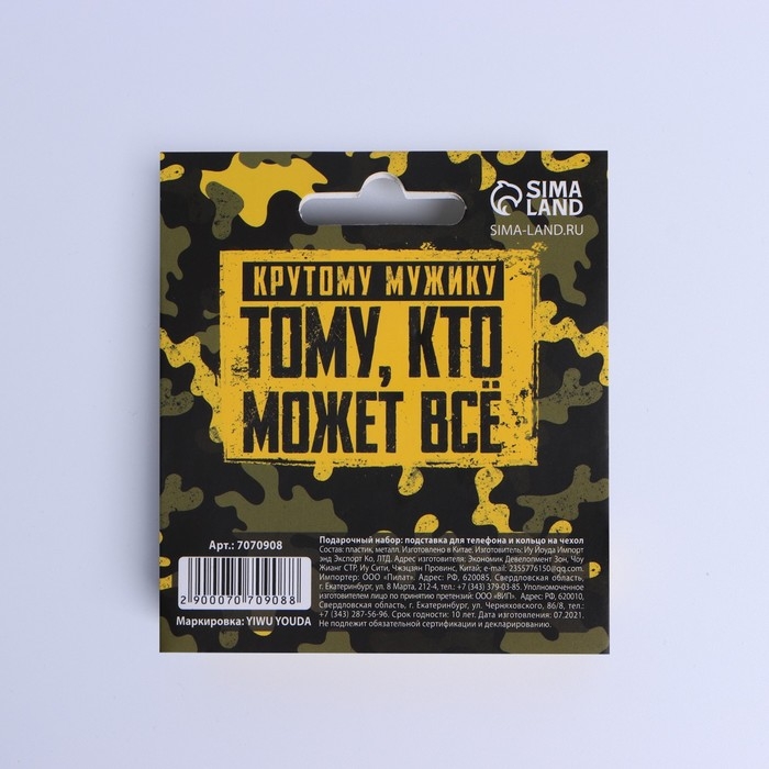 Подарочный набор «Настоящему защитнику»: подставка для телефона и кольцо на чехол