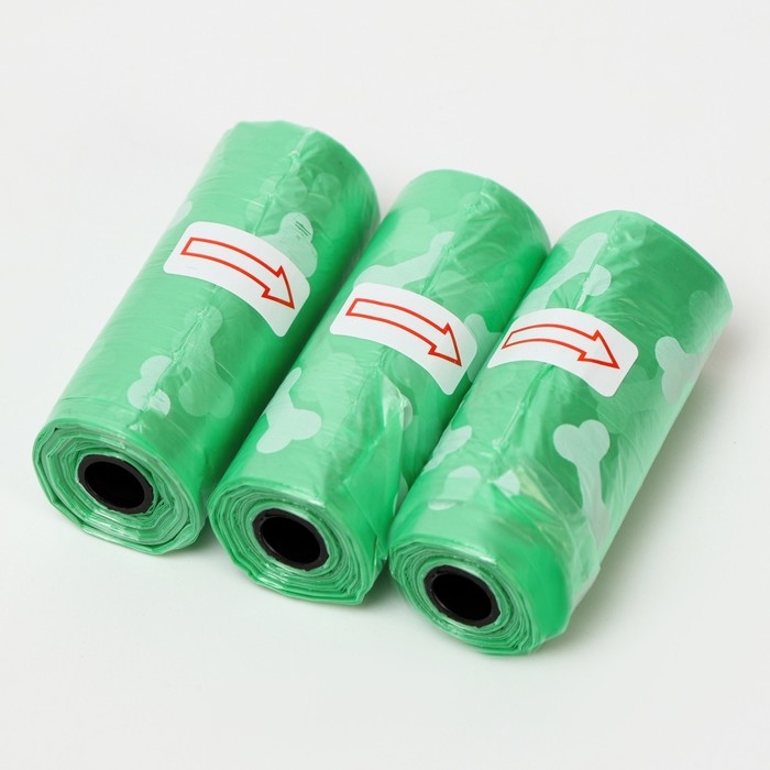Пакеты для уборки за собаками с печатью (3 рулона по 15 пакетов 29х21 см), зелёные