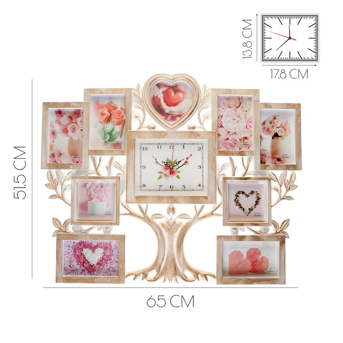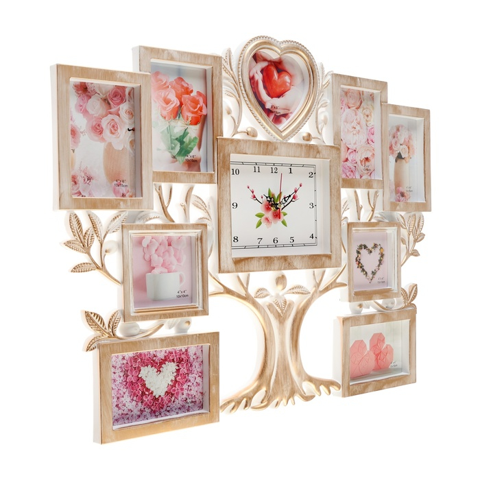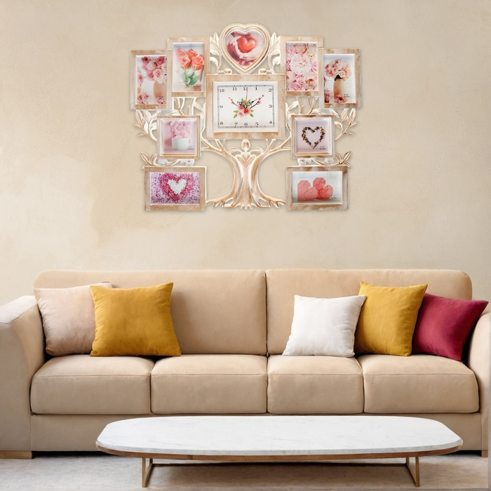 Часы настенные интерьерные, фоторамка - коллаж "Семейное дерево", бесшумные, 51.5 х 65 см