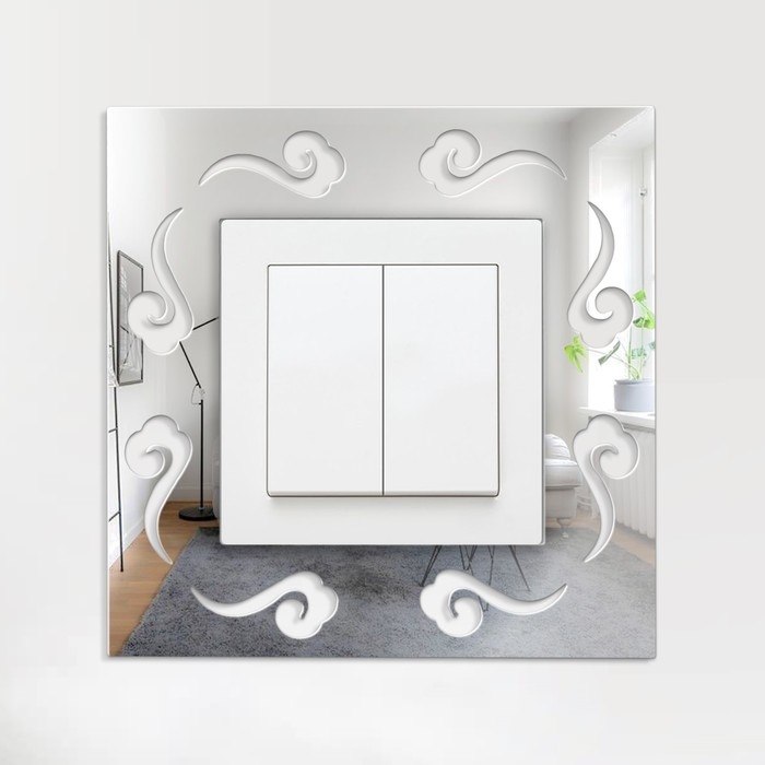 Зеркальная поверхность придает декору изысканный блеск, а узоры, высеченные по периметру, напоминают порывы ветра, придавая композиции легкость и воздушность. Изготовленная из прочного акрила, эта наклейка не только служит украшением стены, но и защищает её от загрязнений и механических воздействий вокруг выключателя.