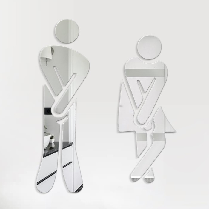 Обозначьте входы в мужские и женские туалеты с этими необычными зеркальными наклейками! Комплект включает две фигуры-значки размером 13x18 см, выполненные из высококачественного акрила. Значки имеют зеркальную поверхность, которая отражает свет и придаёт декору дополнительную глубину и объём.