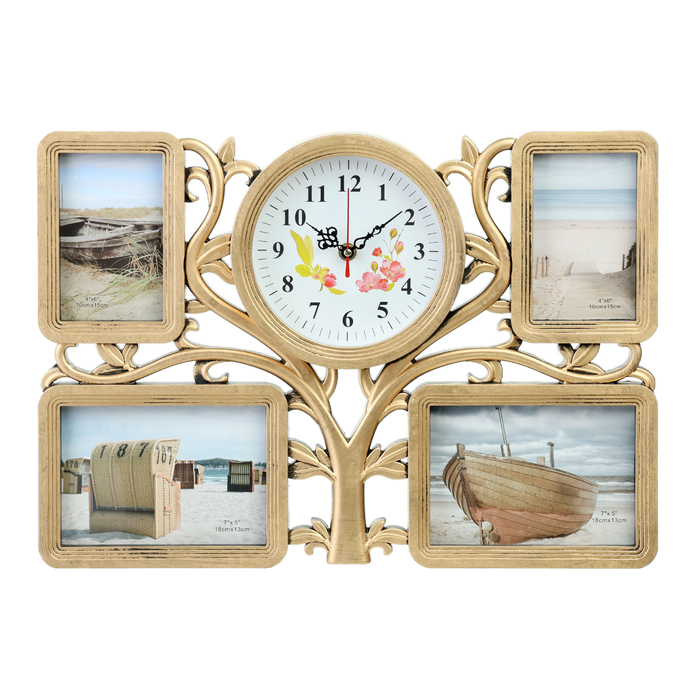 Часы настенные интерьерные, фоторамка - коллаж "Семейное", бесшумные, 33 х 48 см, d-18 см