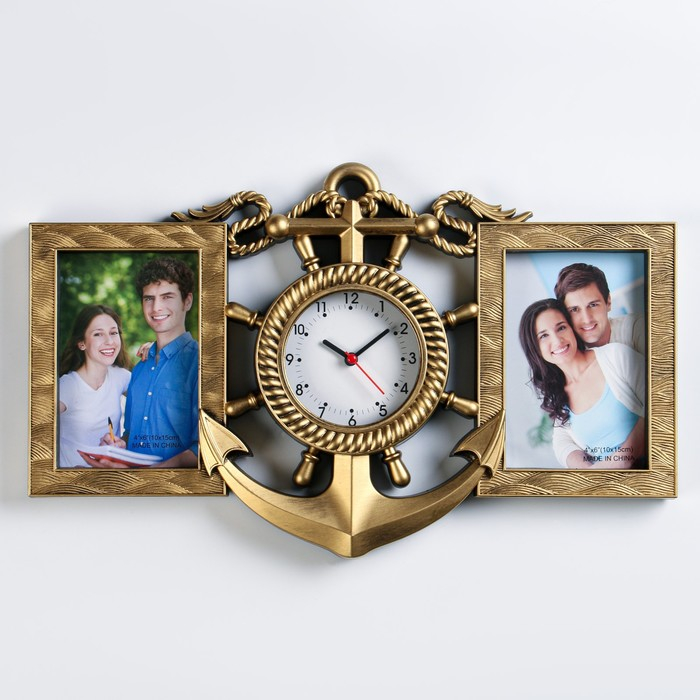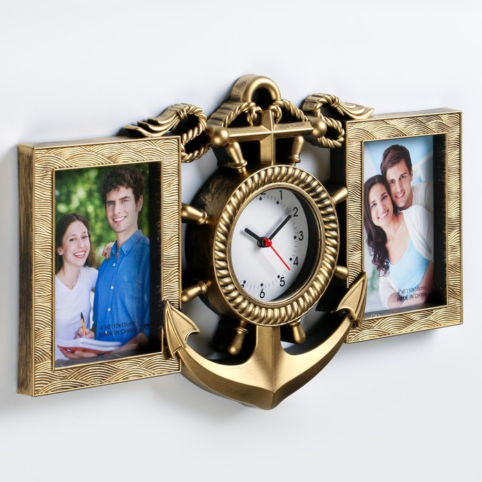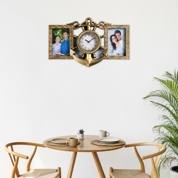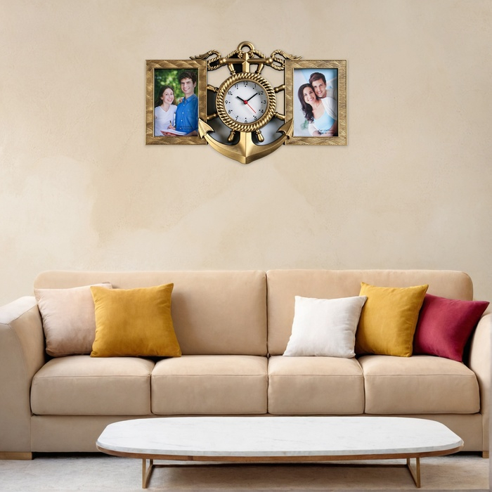Часы настенные интерьерные, фоторамка - коллаж "Якорь", бесшумные, 42 х 27 см, d-12 см