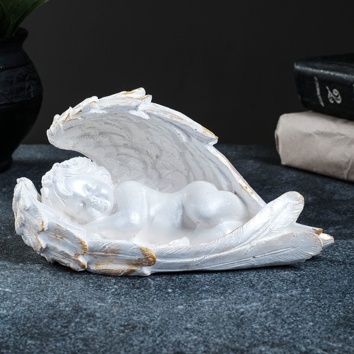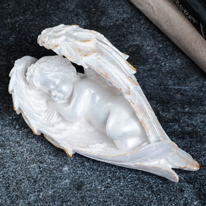 Фигура "Ангел спящий в крыльях" перламутровый, 14х12х6см