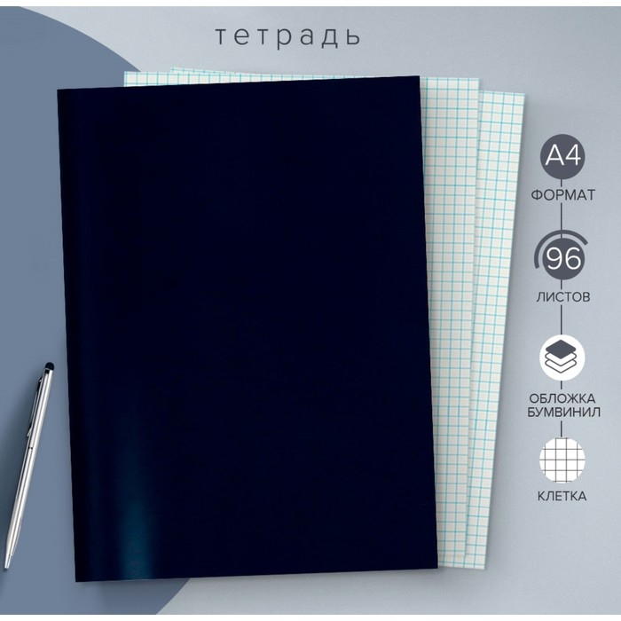 Тетрадь А4, 96 листов в клетку Calligrata, бумвинил, блок №2, эконом, синий