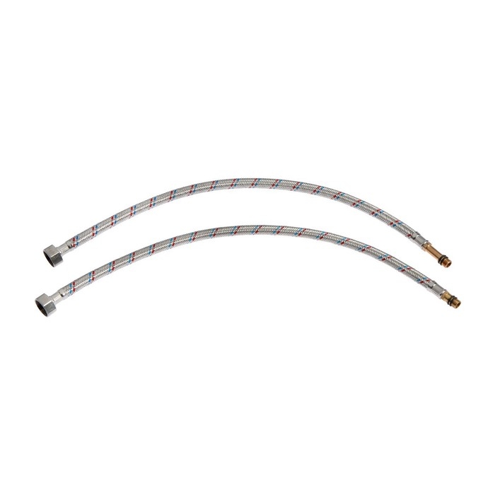 Каждая подводка имеет гайку с диаметром 1/2" и штуцер М10, что обеспечивает совместимость с большинством стандартных смесителей.