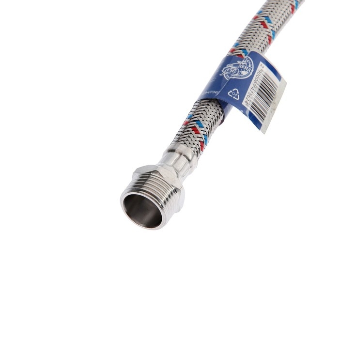 Один конец у подводки оснащен гайкой, а другой — штуцером, что обеспечивает универсальность в установке.