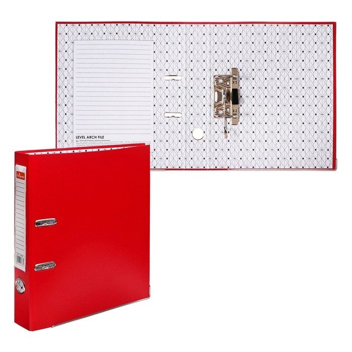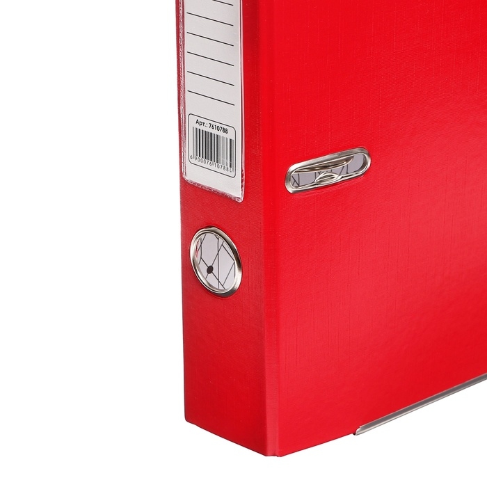 Папка-регистратор А4, 50 мм, Calligrata, ПВХ, тиснение "лен", металлическая окантовка, карман на корешок, собранная, красная, микс
