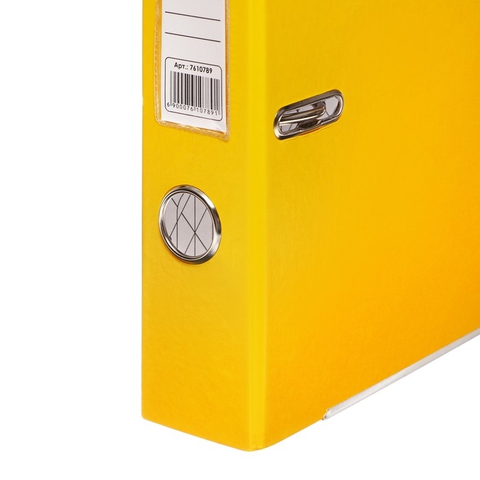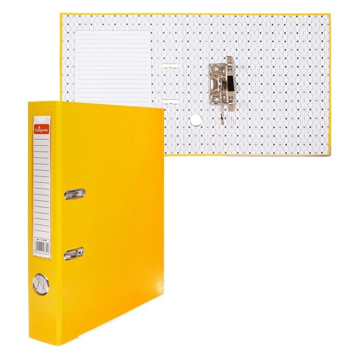 Папка-регистратор А4, 50 мм, Calligrata, ПВХ, тиснение "лен", металлическая окантовка, карман на корешок, собранная, желтая, микс