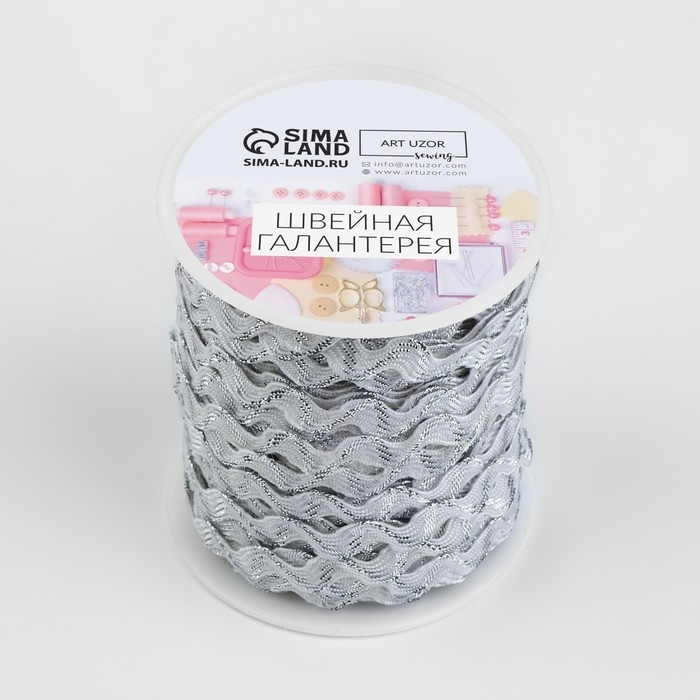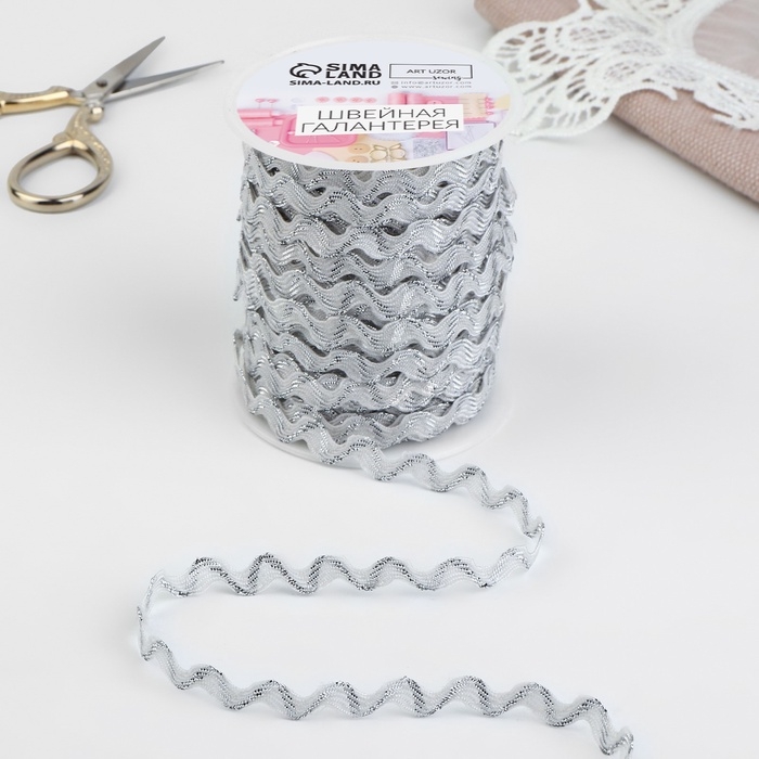 Тесьма отделочная «Вьюнчик» с серебряной нитью, 5 мм, 27 ± 1 м, цвет белый