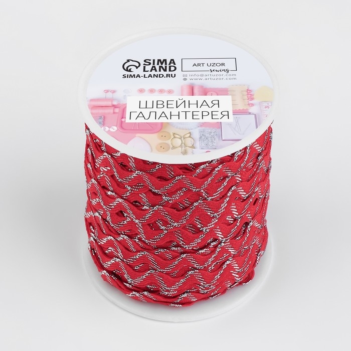 Тесьма отделочная «Вьюнчик» с серебряной нитью, 5 мм, 27 ± 1 м, цвет красный