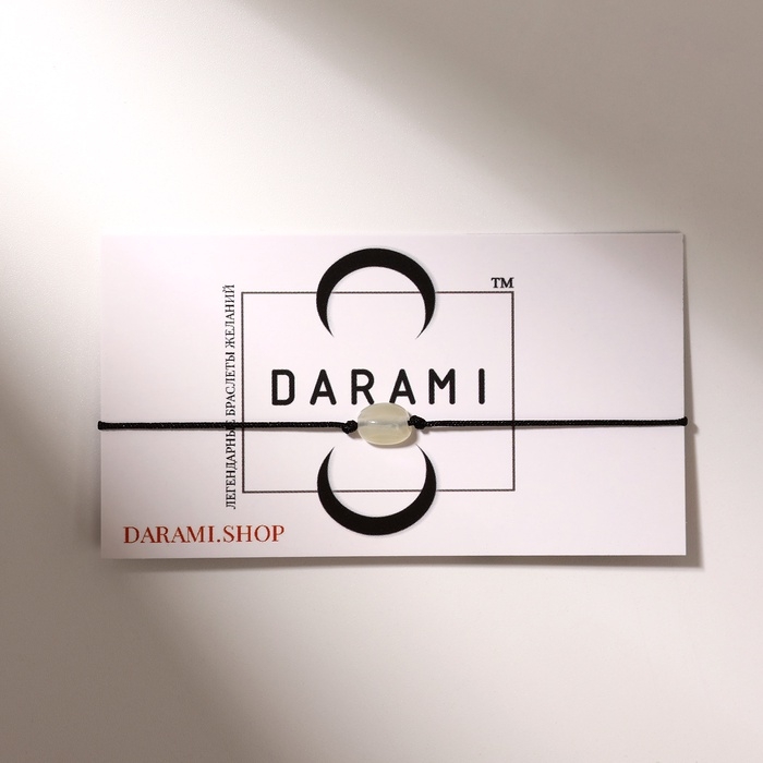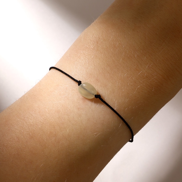 Браслет желаний «Лунный камень» на чёрной нити, длина регулируется