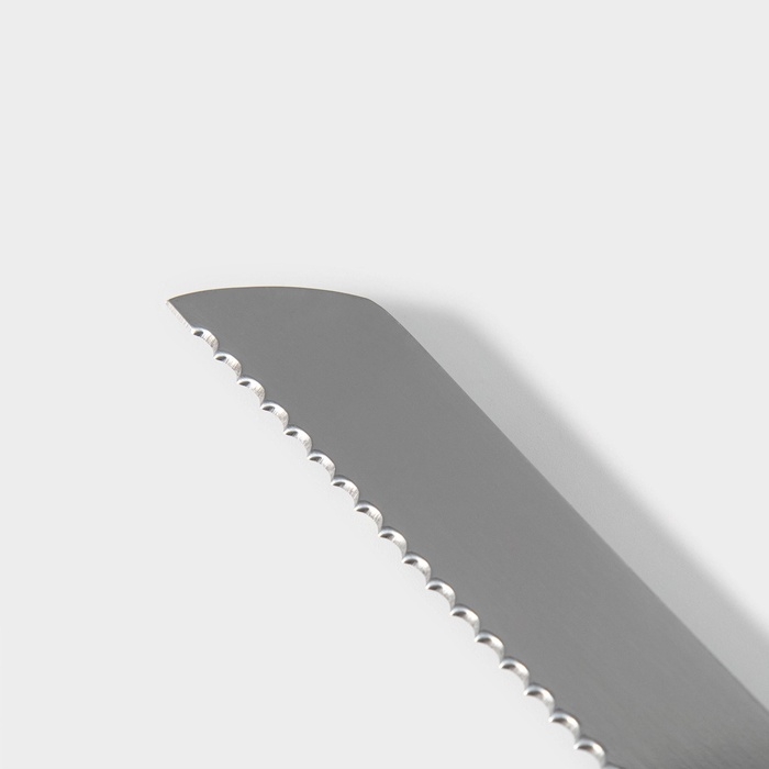 Нож для хлеба «Грайм» - незаменимый помощник на кухне, предназначенный для безопасной и аккуратной нарезки различных видов хлеба, булочек, кексов и других хлебобулочных изделий.