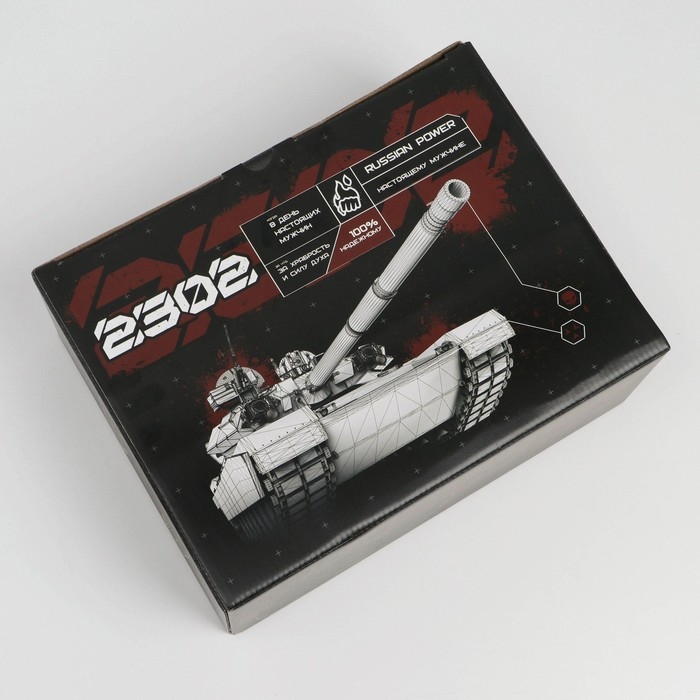 Коробка подарочная сборная, упаковка, «23 февраля, танк», 30 х 23 х 12 см