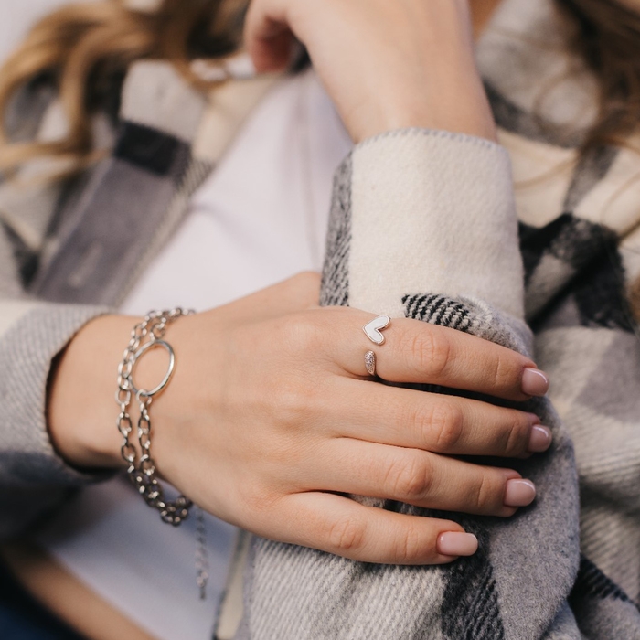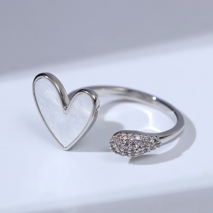 Кольцо «Сердце» мультяшное, цвет белый в серебре, безразмерное