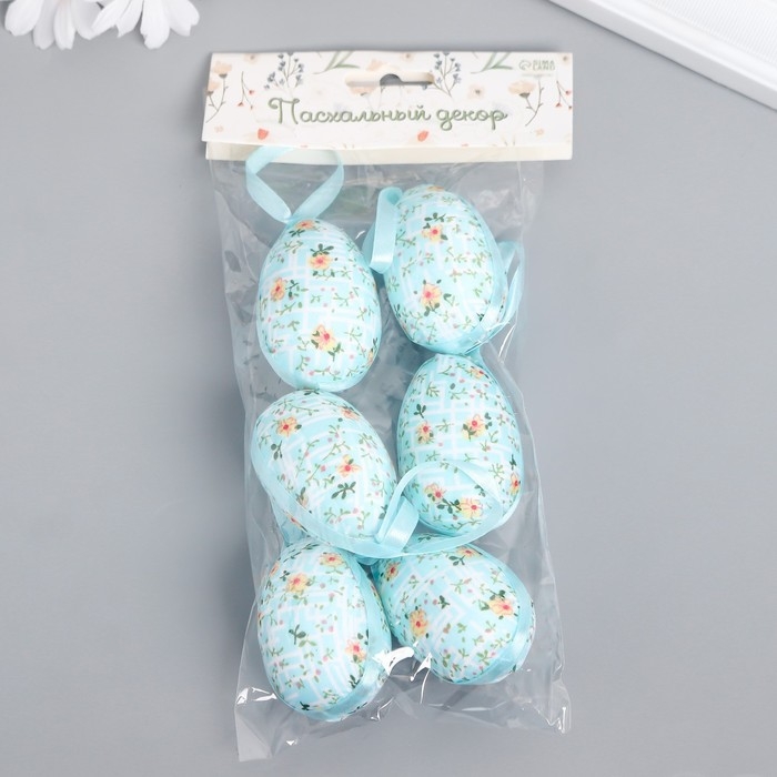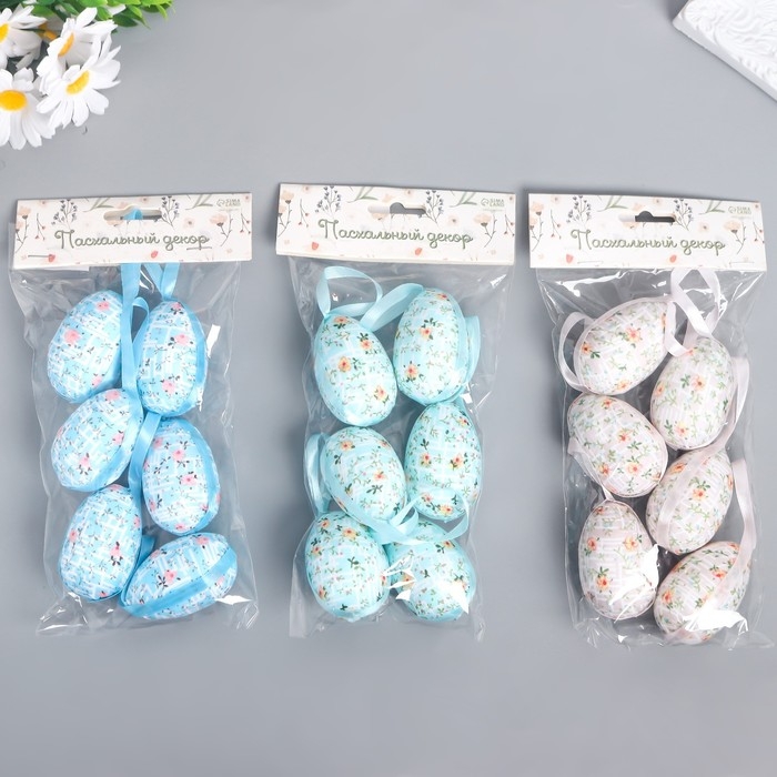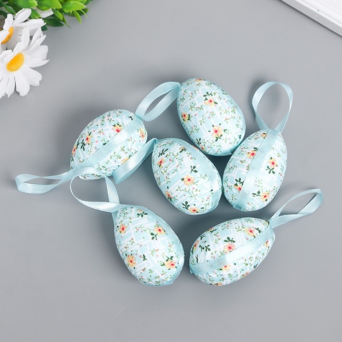 Декор пасхальный подвеска "Яйцо с цветами и узорами" набор 6 шт МИКС 6х4 см