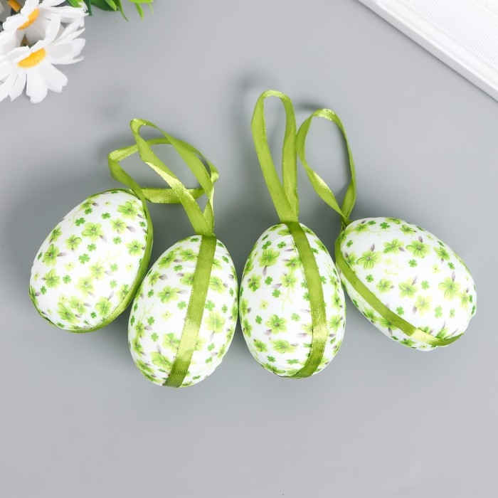 Декор пасхальный подвеска "Яйцо с цветочными веточками" набор 4 шт МИКС 7х5 см