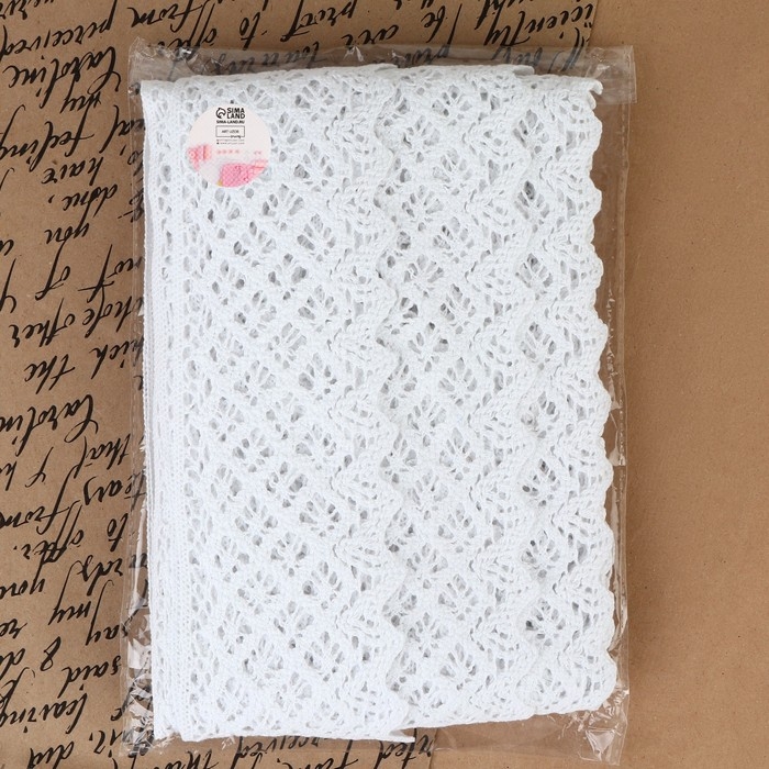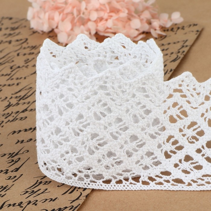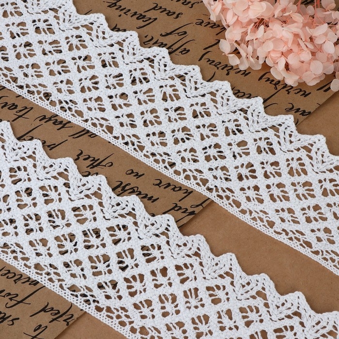 Кружево вязаное, 40 мм × 15 ± 1 м, цвет белый