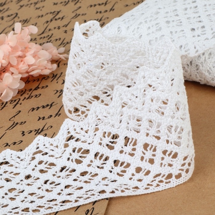 Кружево вязаное, 80 мм × 10 ± 1 м, цвет белый