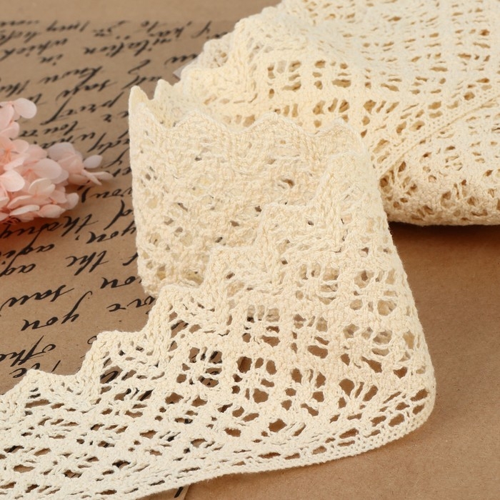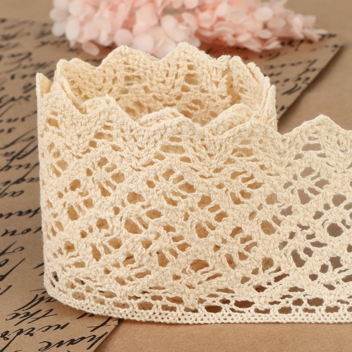 Кружево вязаное, 80 мм × 10 ± 1 м, цвет бежевый