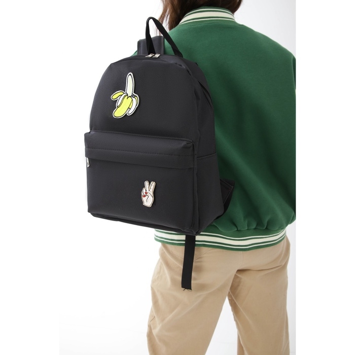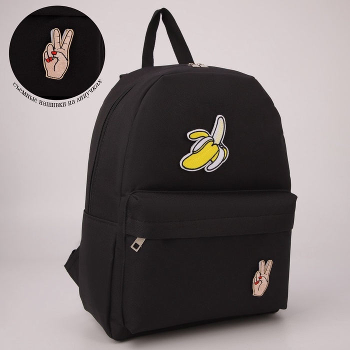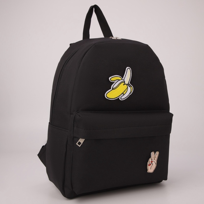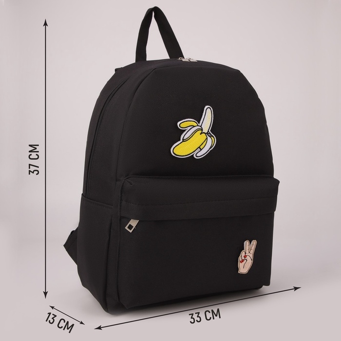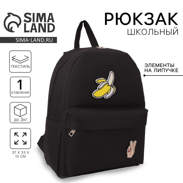 Рюкзак школьный текстильный «Банан», 37 х 33 х 13 см, с липучками, чёрный