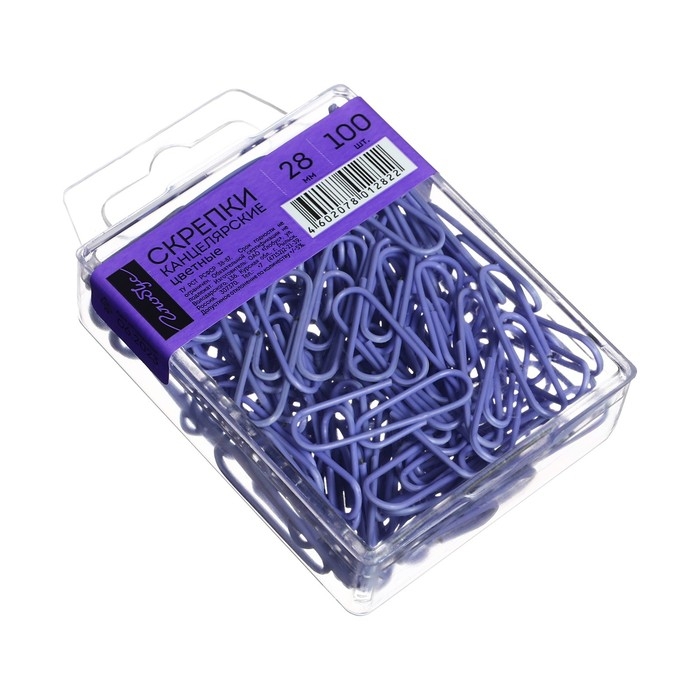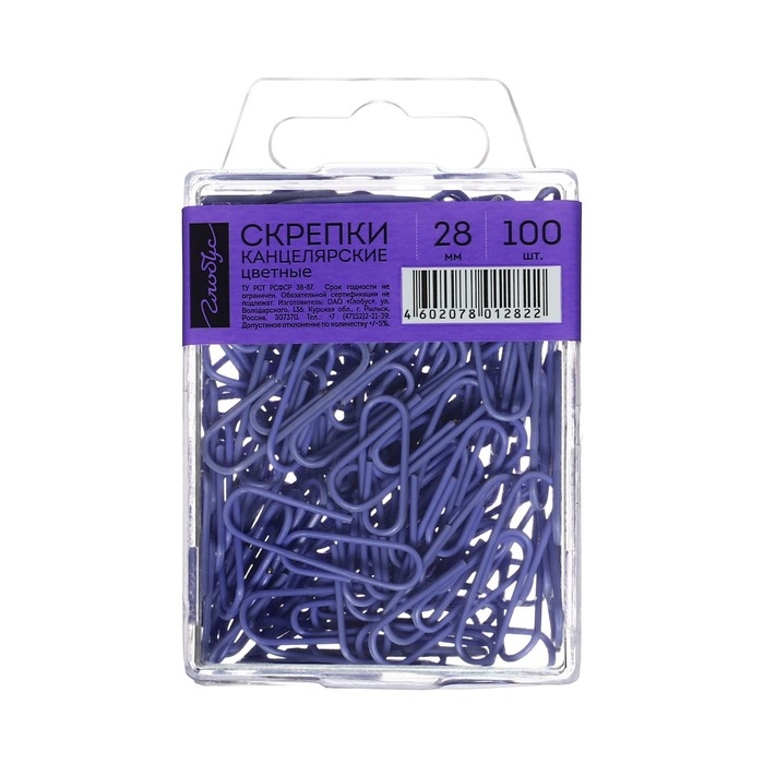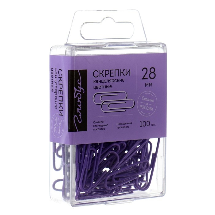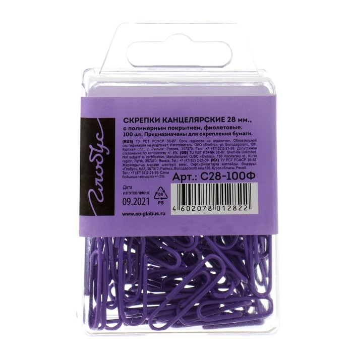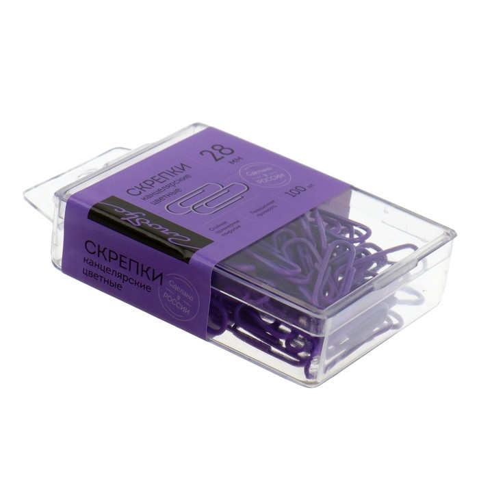Скрепки канцелярские 28 мм, цветные 100 штук GLOBUS фиолетовые, евробокс
