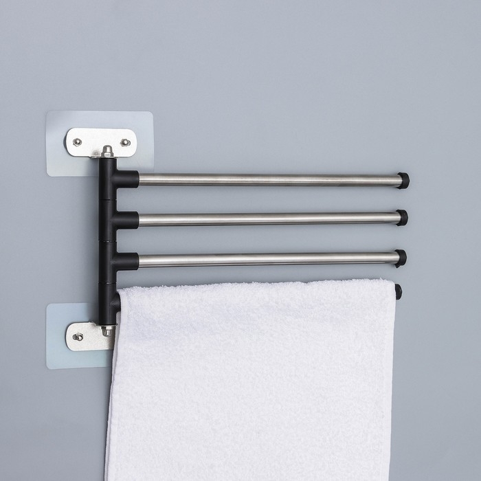 Держатель для полотенец, 4 крючка, 58×10×7,5 см, цвет чёрный