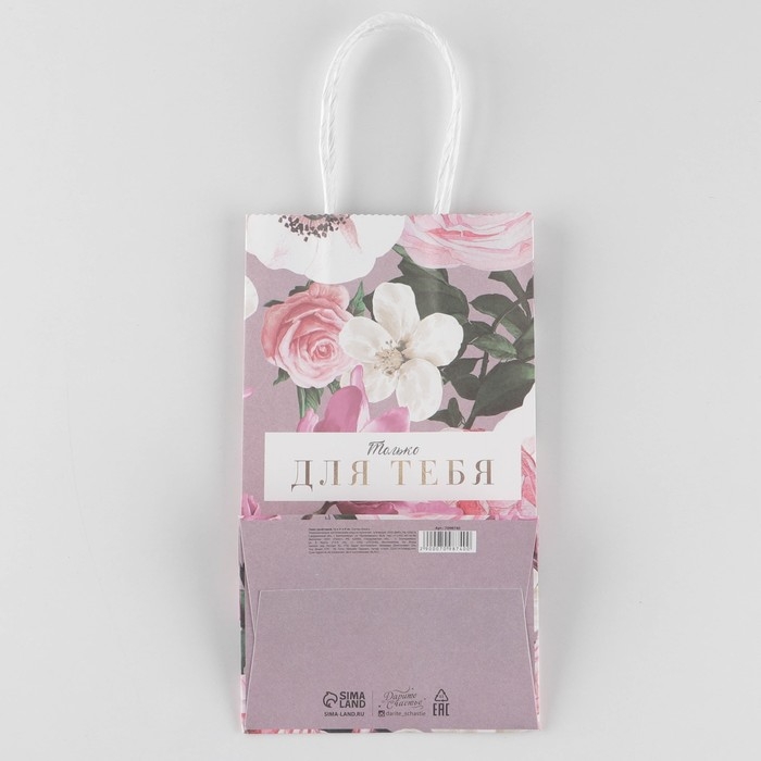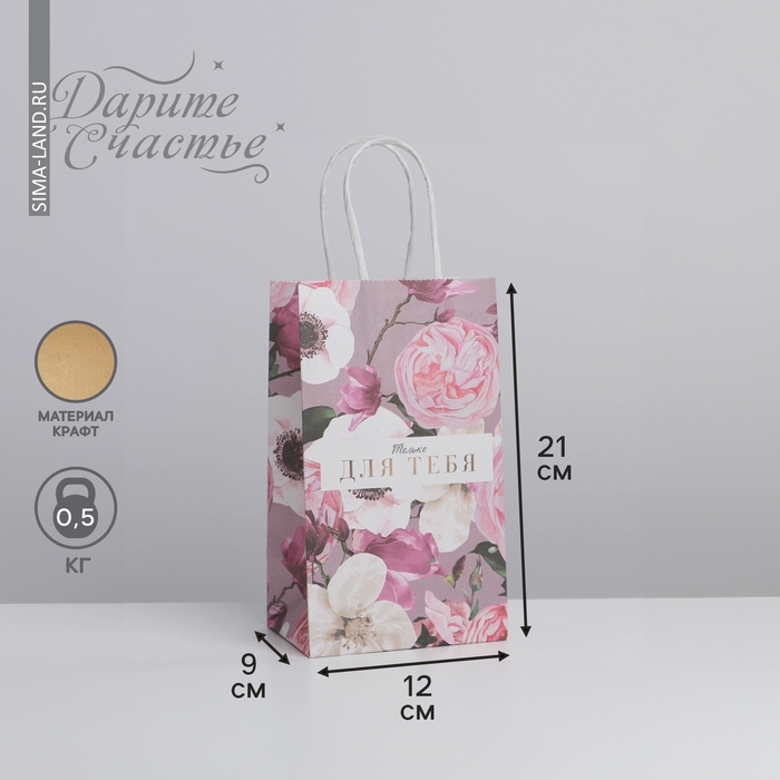 Пакет подарочный крафтовый, упаковка, «Для тебя», 12 х 21 х 9 см