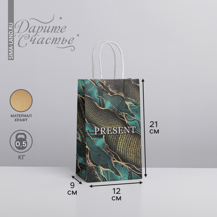 Пакет подарочный крафтовый, упаковка, «Мрамор», 12 х 21 х 9 см