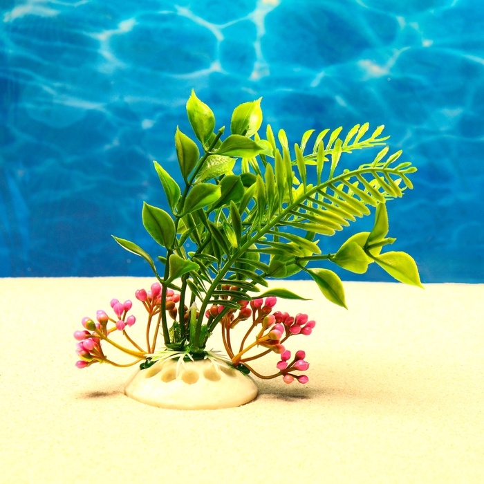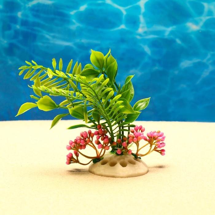 Растение искусственное аквариумное, светящееся, 10 см, красное