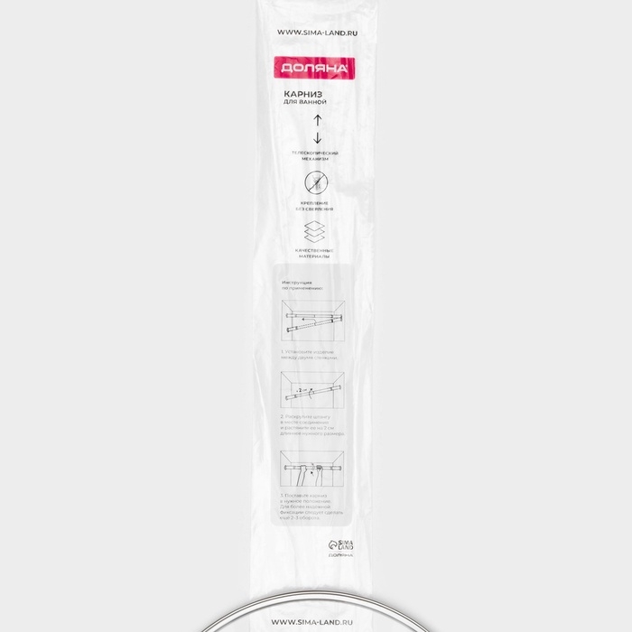 Карниз для ванной Доляна, телескопический, d=3,5 см, 110-200 см, усиленный, цвет белый
