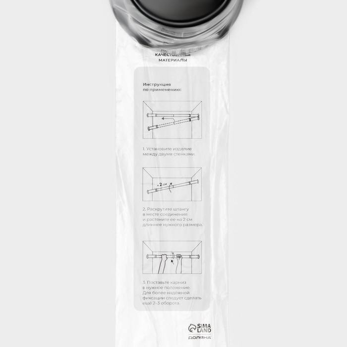 Металлический карниз работает по следующему принципу. Вы устанавливаете его одной стороной в стену и раскручиваете с другой. После того как второй край упрётся, следует сделать ещё 2–3 оборота для более надёжной фиксации. Затем просто навесьте штору с крючками и распрямите её по всей длине.