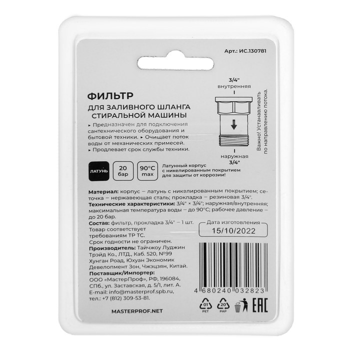Фильтр MasterProf ИС.130781, для заливного шланга стиральной машины