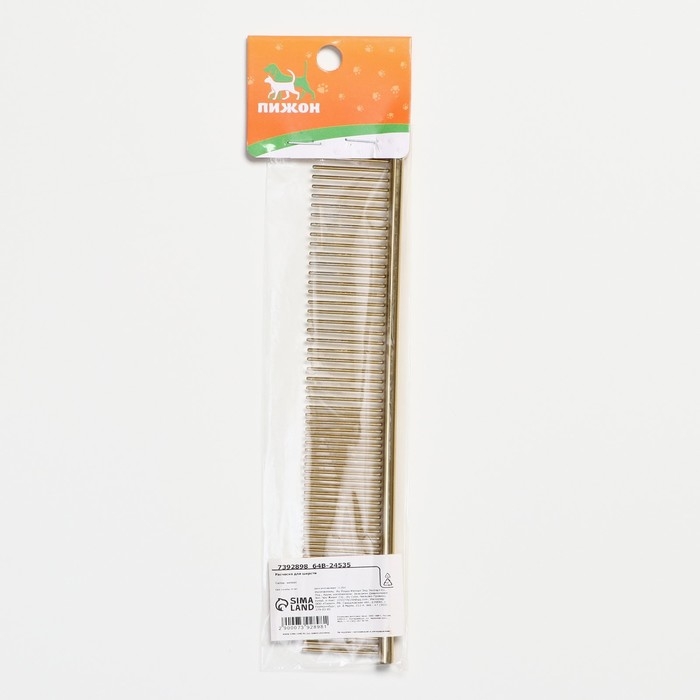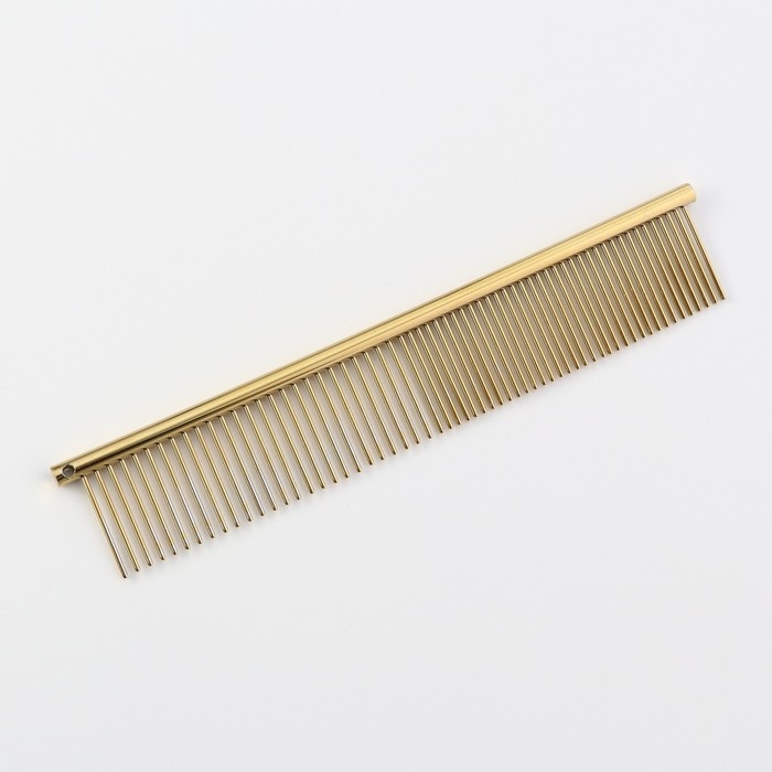 Расческа для шерсти с гальваническим покрытием, 18 х 3 см, золотистая