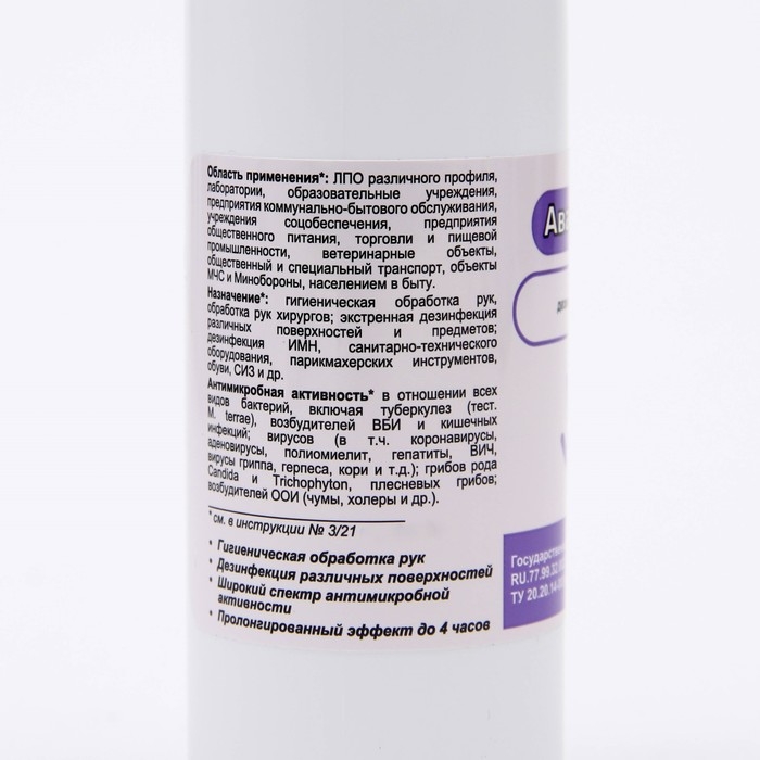 Для дезинфекции небольших по площади и/или труднододоступных поверхностей и предметов, ИМН, для гигиенической обработки рук и обработки рук хирургов, обработки кожи инъекционного и операционного поля, локтевых сгибов доноров, санитаризации кожных покровов и обеззараживания СИЗ.