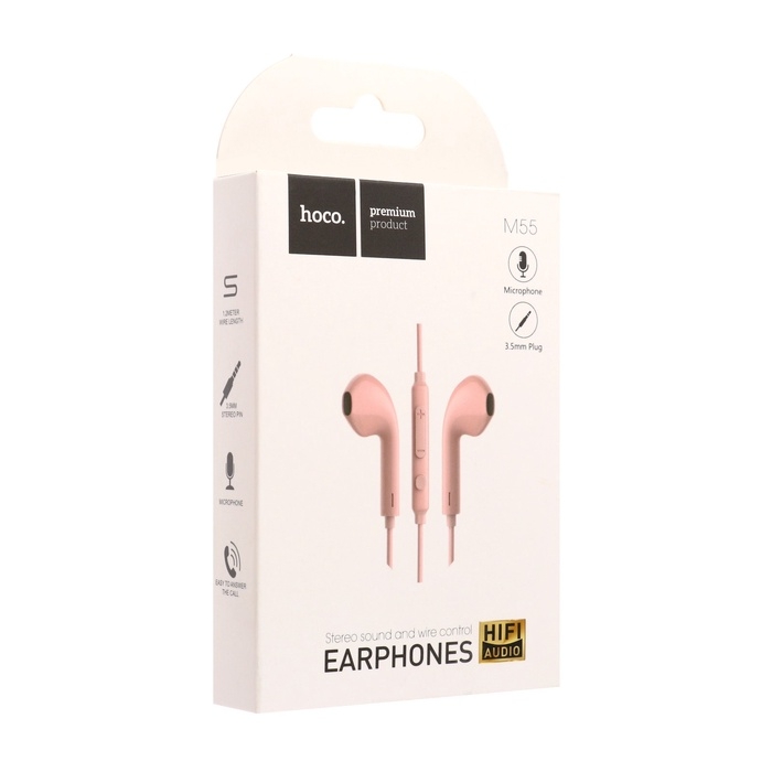 Наушники Hoco M55, проводные, вкладыши, микрофон, Jack 3.5, 1.2 м, розовые