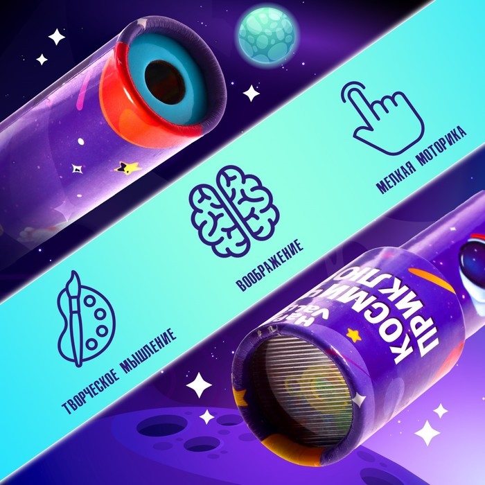 Калейдоскоп «Космические приключения» — это не просто игрушка, а целый мир удивительных узоров, заключённый в небольшой трубке. Внутри него хаотично перемещаются разноцветные стёклышки и блёстки, которые при вращении складываются в замысловатые симметричные узоры. Каждый поворот трубки — это новое волшебное изображение, которое не сможет оставить равнодушным ни ребёнка, ни взрослого.
