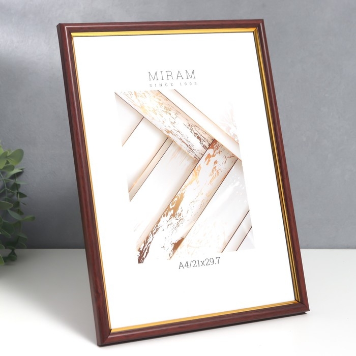 Фоторамка пластик "МИРАМ" 21х29,7 см, (A4) бук с золотом (пластиковый экран)