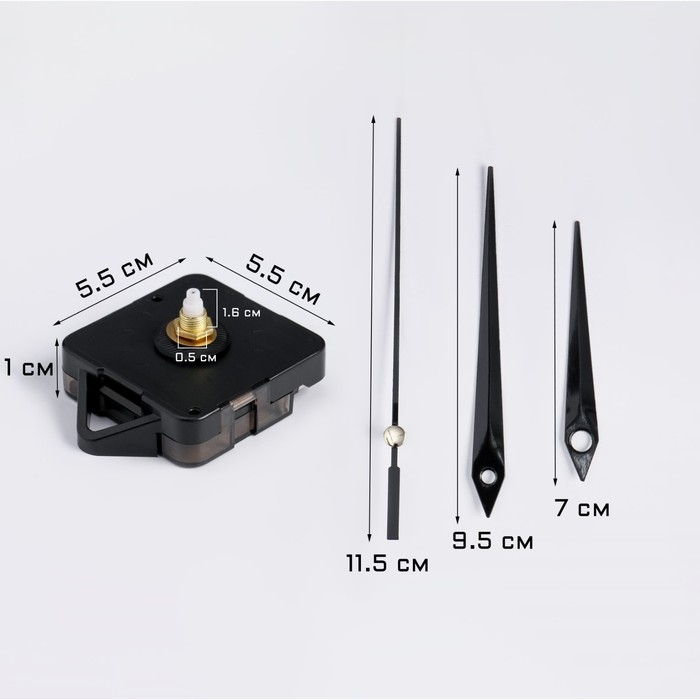 Часовой механизм со стрелками "Соломон-5", плавный ход, шток 16 мм, стрелки 70/95/115 мм