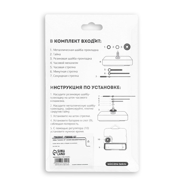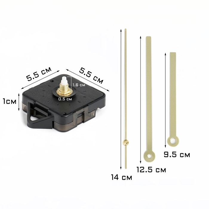 Часовой механизм со стрелками "Соломон-16", плавный ход, шток 16 мм, стрелки 95/125/140 мм