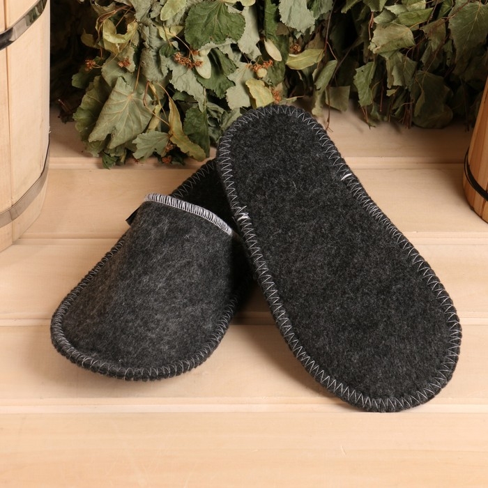 Тапочки для бани «Добропаровъ» женские, шерсть, полиэфир, серые 26 см стелька