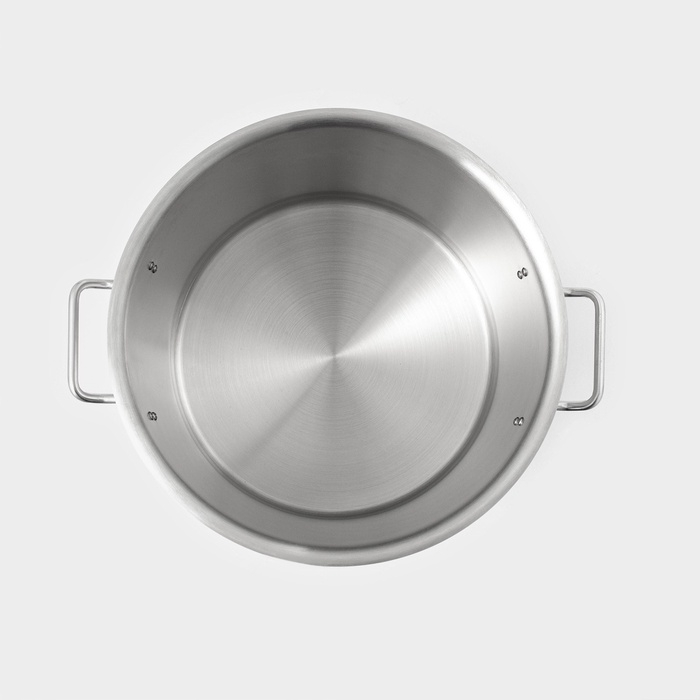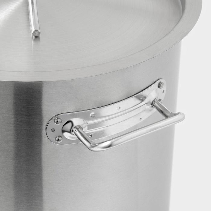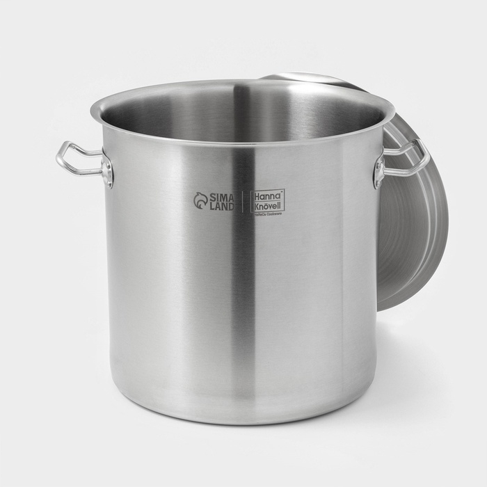 Кастрюля из нержавеющей стали Hanna Knövell HoReCa, 30 л, толщина 0,8 мм, 201 сталь, дно 3,2 мм, металлическая крышка, с теплораспределительным слоем, индукция