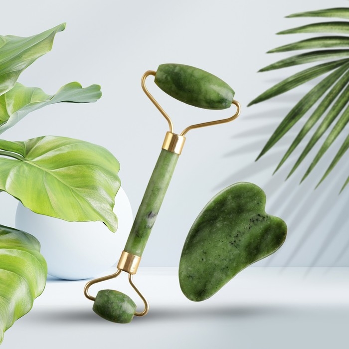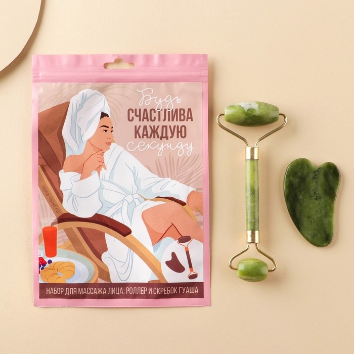 Набор массажеров Гуаша для лица «Будь счастлива», кальцит, серпентин