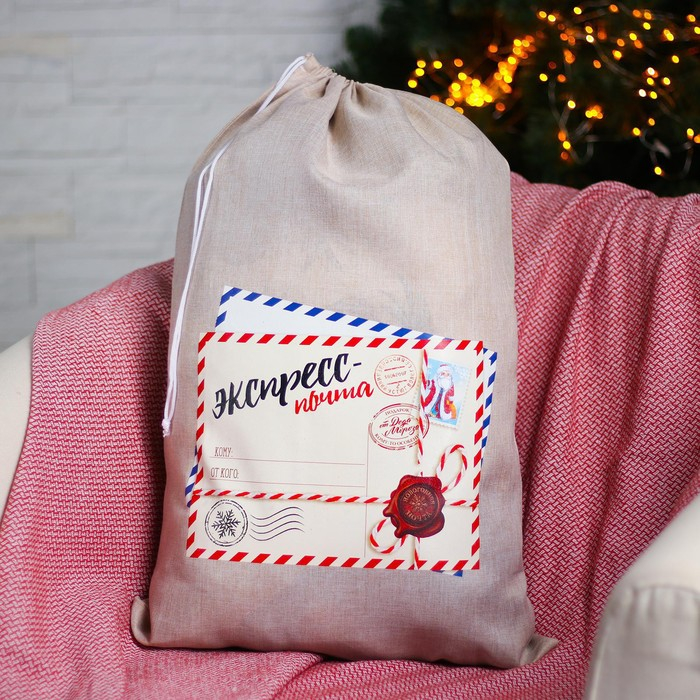 Новогодний мешок Деда Мороза «Экспресс-почта» холщовый, 40 × 60 см.